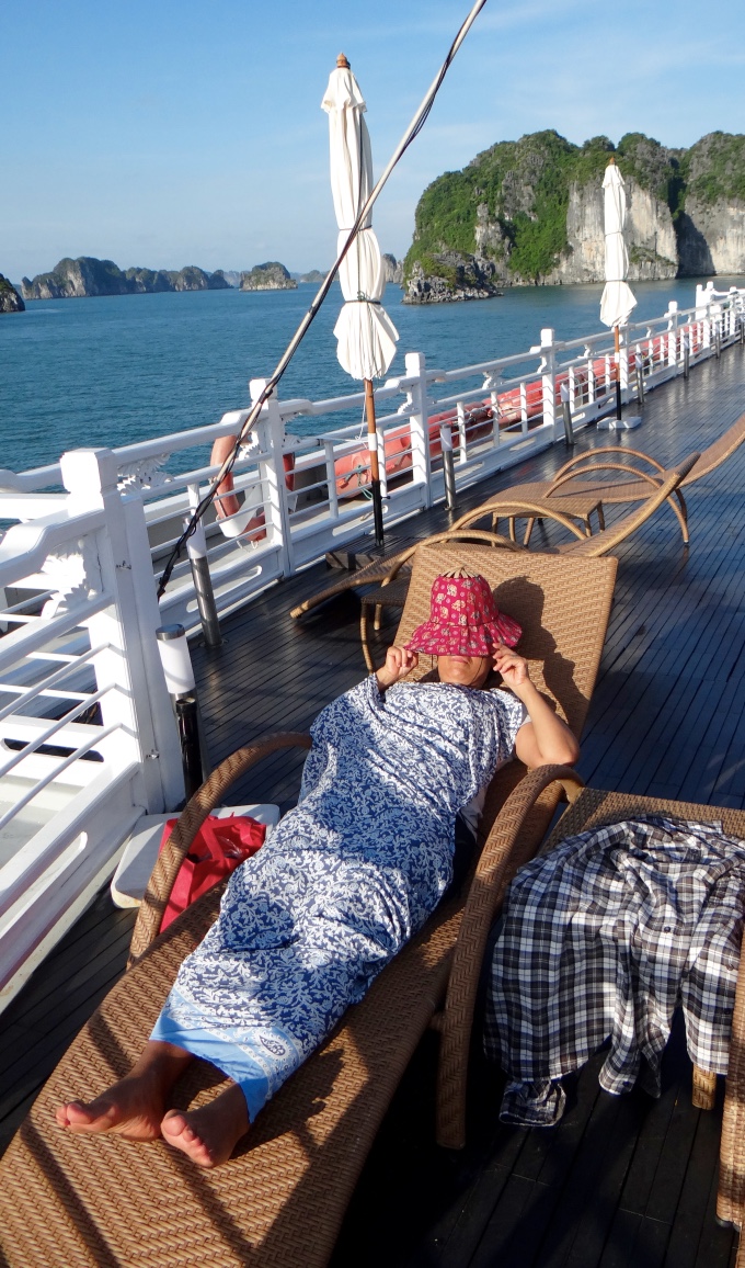 The boat pulled into a sheltered area of Ha Long Bay to moor for the night. We were able to enjoy the stunning sunset over the rocky outcrops of limestone. We were blown away. Well, three of us were at least. There was a distinct air of discontent radiating from dad. “I’ve been lied to! Why aren’t they screening my film?!” In the 90s, he had had a brief stint as an extra on the film Indochine. His role was a French naval officer who had to set a Vietnamese fishing boat on fire and send the occupants to their death. Our cousin, who had lived in Vietnam for many years, told us that throughout Ha Long Bay they screened the film nightly. And on that information, dad had booked up a holiday to Vietnam with Ha Long Bay as a compulsory destination. I’m not sure he’ll ever be able to recover from this colossal disappointment!