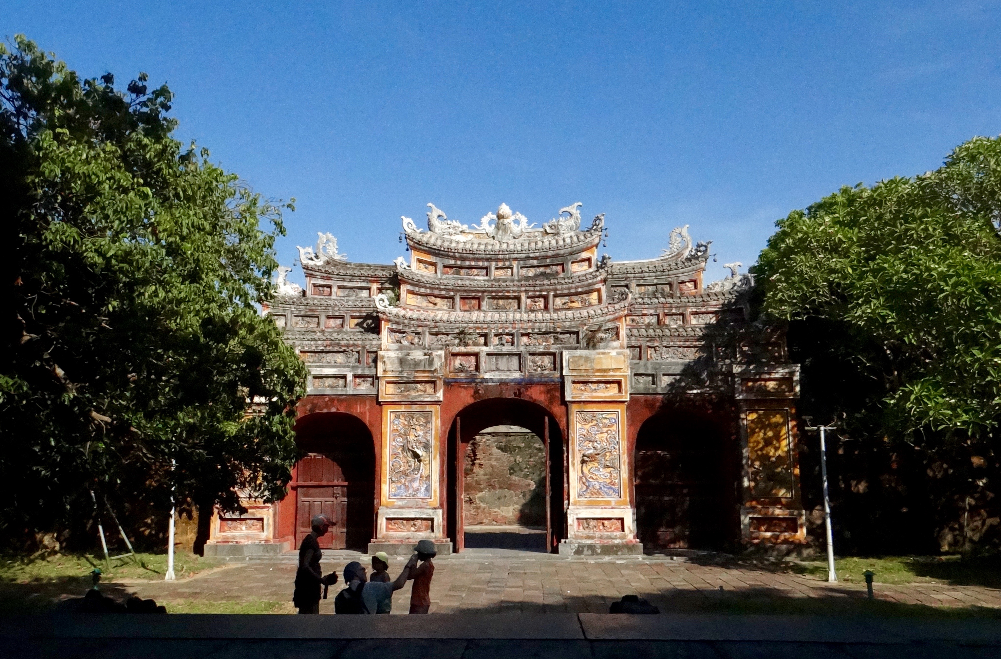 Almost as soon as we arrived in Hue we set off for some hardcore sightseeing. We travelled down the Perfume River to the Pagoda. Beautiful, serene and very zen – it was easy to imagine spending hours doing yoga or meditating there! From there we made our way to the citadel/Imperial city. While we were exploring the citadel, no matter where we went, we kept bumping into these old Viet Cong veterans on a reunion. Two hours later, at the end of our expedition, they had apparently gotten so comfortable with us that they were barking orders about where we should sit, stand and walk…